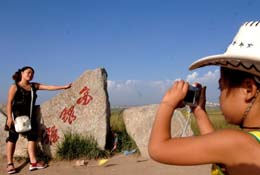 8月23日,游客在金銀灘草原攝影留念。近年來,青海省著力打造環(huán)青海湖民族體育旅游圈經(jīng)濟帶,金銀灘草原以奇美的自然風(fēng)光、獨特的人文景觀逐漸成為旅游和休閑度假勝地,吸引眾多國內(nèi)外游客。金銀灘草原位于青海湖東北側(cè)的青海省海北自治州海晏縣,因“西部歌王”王洛賓譜寫的一首膾炙人口的歌曲《在那遙遠的地方》而聞名海內(nèi)外。