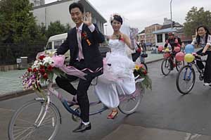 走路上班盡管健康,但也有很大的局限性——住的地方離單位不能很遠(yuǎn),否則難以堅(jiān)持,對身體的消耗也太大。由此,騎自行車成為了另一種綠色出行方式。 趙先生是一名自行車的忠實(shí)愛好者。他告訴記者,從上大學(xué)到工作,他一直以自行車為主要交通工具,只要情況允許,他一般不選擇公交、地鐵、出租等交通方式。 而趙先生選擇自行車,并不完全因?yàn)榉奖,其?shí)他本人還是一名環(huán)保志愿者。“節(jié)能減排的重要意義大家都明白,可是很多人認(rèn)為這和自己沒什么關(guān)系。其實(shí),只要大家能盡量多地使用自行車這樣的綠色交通工具,就是在為環(huán)境、為后代做貢獻(xiàn)了。”趙先生說。 事實(shí)上,像趙先生這樣懷念自行車的人越來越多,如今,人們對自行車這種傳統(tǒng)交通方式的回歸已催生了一些新的行業(yè)。 記者在北京國華商場、牛街路口等地看到,上百輛顏色鮮艷且統(tǒng)一規(guī)格的自行車整齊地停在路邊。原來,這里開設(shè)了自行車租車點(diǎn),行人只要辦一張會(huì)員IC卡,就可以以每小時(shí)五角錢的價(jià)格租到自行車,且可以在其他網(wǎng)點(diǎn)異地還車,電子計(jì)時(shí)扣費(fèi),非常方便。