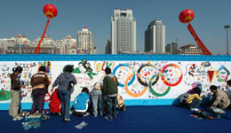 中國移動(dòng)天津有限公司聯(lián)合教育、環(huán)保等部門日前在天津奧體中心廣場(chǎng)舉辦了中國移動(dòng)“綠色手印”奧運(yùn)環(huán)保先鋒涂鴉活動(dòng)。近200名中學(xué)生為“2008北京奧運(yùn)會(huì)”獻(xiàn)上了一幅幅以“綠色奧運(yùn) 綠色手印”為主題的涂鴉作品。 |