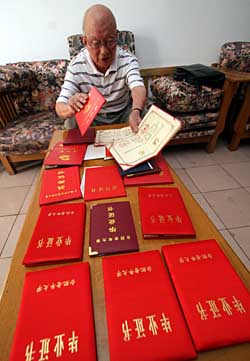 在貴州老年大學有一個非常特別的班級“99聲樂提高班”,這個班87名學生多半是1995年至1999年報名就讀的,可至今10多年過去,他們?nèi)詻]有畢業(yè),因此也成為全校平均年齡最大的班級,班里曾有三位90多歲的學生,其中兩位今年剛剛?cè)ナ,還有一位仍在堅持上課。 是什么力量讓這些老年人對學校生活如此眷戀,75歲的班長殷瓊珍說:“學校是我們大家的第二個家,只要學校允許,我們永遠也不想畢業(yè),我們想在這里一直學下去!彼f,當時學校只有這一個聲樂班,很多喜歡唱歌的老年朋友陸續(xù)加入,大家在這里愉快地學習、愉快地歌唱,感情越來越深,以至于大家都舍不得分開。 87歲高齡的袁愈慧精神抖擻地坐在第一排,隨著音樂節(jié)拍放聲高歌“珠穆朗瑪”,她告訴記者,從1990年到老年大學學習,十幾年來學過書法、國畫、太極拳、中醫(yī)、聲樂等多門課程,“對我來說,每次上課都像過節(jié)一樣,一次課結(jié)束就盼著下一次上課”。袁愈慧的家距離學校有10多站路程之遠,“只要能起床行動,我絕不會耽誤一節(jié)課,”她告訴記者,老伴已經(jīng)去世多年,孩子不在身邊,到學校學習,和朋友們交流是她最大的精神寄托。