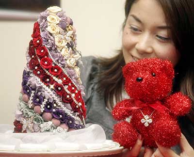 在日本首都東京的高島屋總店,一名職員展示總售價(jià)約兩億日元(約合1351萬(wàn)元人民幣)的一棵綴滿鉆石的圣誕樹和與其配套的泰迪玩具熊。這套商品是日本大型百貨集團(tuán)高島屋為迎接圣誕節(jié)假期而推出的,圣誕樹和泰迪熊身上一共裝飾了約400顆、總重100克拉的鉆石。