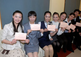 中國國際航空公司“300名奧運空乘”招募暨“奧運空乘新星”評選活動日前拉開帷幕。據(jù)介紹,此次“奧運空乘”招募主要是為2008年北京奧運會運輸提供服務(wù)。圖為參加國航“奧運空乘”招募的應(yīng)聘者展示復(fù)試通知書。