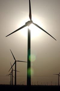 風(fēng)能資源豐富的甘肅省酒泉市將啟動千萬千瓦級風(fēng)電基地建設(shè)項目。甘肅省根據(jù)國家風(fēng)電發(fā)展規(guī)劃,提出“建設(shè)河西風(fēng)電走廊,打造西部陸上三峽”的戰(zhàn)略目標(biāo)。按照規(guī)劃,酒泉風(fēng)電基地建設(shè)選擇了風(fēng)電建設(shè)條件相對較好的8個風(fēng)電場,規(guī)劃總裝機容量3565萬千瓦。到2010年底,酒泉風(fēng)電基地累計裝機要達到341萬千瓦,到2020年累計裝機容量達到1065萬千瓦。 |