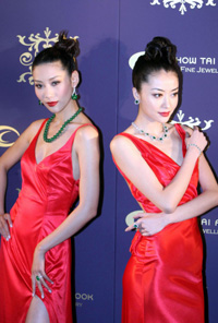 日前,瑰麗珠寶系列展在香港舉行,八位名模展出珠寶總價值超過10億港幣。圖為名模在展示珠寶首飾。