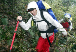 1月20日,參加“驢友節(jié)山地越野競技賽”的“驢友”在環(huán)西湖群山里跋涉。 1月19日至20日,來自上海、福建、河南、浙江等省市的40多家俱樂部的200余名戶外徒步旅行愛好者匯聚杭州,參加“2008首屆中國驢友節(jié)”的系列活動。“驢友”取自“旅游”的諧音,是圈內(nèi)形容戶外運(yùn)動者的專用詞。