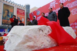 北京2008奧運(yùn)會金、銀牌玉料啟運(yùn)儀式1月22日在青海格爾木市昆侖花園廣場舉行。本報記者:楊壽德