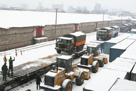 2月13日,支援電網(wǎng)搶修的載重牽引車抵達(dá)六盤水。當(dāng)日,由成都軍區(qū)派出增援貴州搶修供電線路的解放軍官兵和載重牽引車順利到達(dá)六盤水,確保在2月25日前全面完成六盤水電網(wǎng)抗冰保電及災(zāi)后重建任務(wù)。