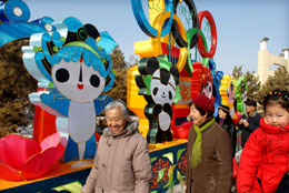 元宵佳節(jié),寧夏銀川市森林公園舉辦的2008新春燈會(huì)吸引了眾多市民前來觀看,其中系列奧運(yùn)主題藝術(shù)彩燈成為燈會(huì)的新亮點(diǎn)。