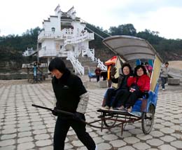 安徽黃山市前段時(shí)間遭遇的雪災(zāi)造成旅行團(tuán)退團(tuán)400多個(gè),當(dāng)?shù)匦羌夛埖杲哟看蠓陆。目前,黃山的各大景區(qū)已全面恢復(fù)正常運(yùn)營,游客接待量開始逐步回升。圖為韓國游客在黃山花山謎窟景區(qū)游覽。
