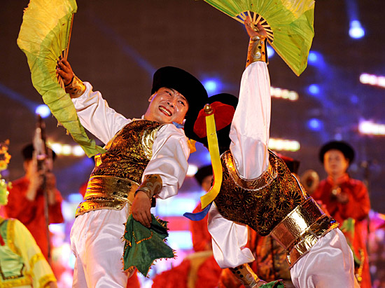 當(dāng)晚,首屆中國(guó)秧歌節(jié)在山東膠州市開(kāi)幕。安徽花鼓燈、東北大秧歌、安塞腰鼓等16支國(guó)內(nèi)一流秧歌隊(duì)為觀眾獻(xiàn)上了一臺(tái)精彩紛呈的秧歌盛宴。