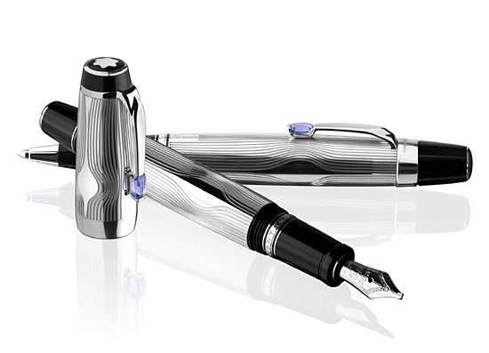 萬寶龍日前推出了全新的“波希米亞阿拉伯之舞藍(lán)晶石”系列。該系列的墨水筆、圓珠筆及簽字筆以純銀精鑄,筆桿表面飾以精致的刻紋線條,與烏亮的樹脂筆頭形成悅目對(duì)比。尤為值得一提的是,這三款新作的筆夾均飾以閃爍蔚藍(lán)色晶石,延續(xù)了波希米亞書寫工具系列的設(shè)計(jì)特色。