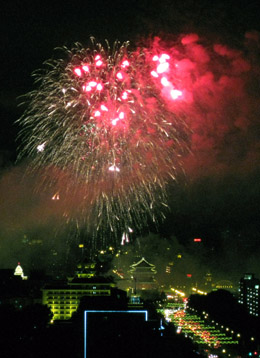 為迎接奧運會開幕,天安門8月2日試放焰火。