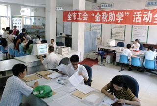 日前,2008年哈爾濱市總工會(huì)“金秋助學(xué)”助學(xué)金開(kāi)始發(fā)放,將有近千名特困職工和困難農(nóng)民工子女得到資助,資助金額總計(jì)超過(guò)300萬(wàn)元。據(jù)了解,哈爾濱“金秋助學(xué)”活動(dòng)已經(jīng)連續(xù)開(kāi)展了5年,共籌集發(fā)放助學(xué)資金1100萬(wàn)元,幫助了4000余名貧困家庭的孩子圓了大學(xué)夢(mèng)。