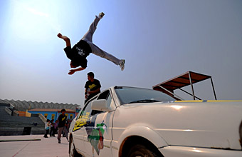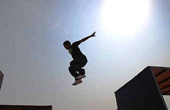 有人把城市的水泥叢林比喻成“死亡墳?zāi)埂,因為它限制了人類活動,F(xiàn)如今,許多國家的城市中活躍著這么一群飛檐走壁的“健兒”,他們把整個城市視為游樂場:時而像輕功高手,從兩層樓高的建筑物上瀟灑地跳到地面上;時而如同蜘蛛俠,手腳“吸”在墻壁上向上爬;時而又好似忍者,從一幢樓的頂層縱身一躍,跳到毗鄰樓房的頂層…… 他們,就是城市中一個新興群體——跑酷一族。