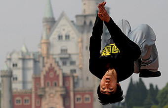 | 來自中國跑酷俱樂部的幾位選手在長沙世界之窗公園里為觀眾們奉獻了一場跑酷運動秀,他們通過嫻熟的奔跑、翻轉(zhuǎn)、跳躍、攀爬動作,在各種障礙物間自由穿越,贏得觀眾喝彩。新華社記者