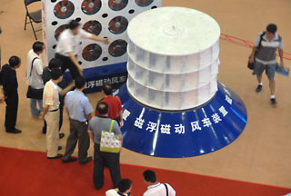 9月3日,觀眾參觀一款磁浮磁動(dòng)風(fēng)車裝置。當(dāng)日,為期3天的2008年中國國際專利技術(shù)與產(chǎn)品交易會(huì)在大連世界博覽廣場開幕,約4100項(xiàng)海內(nèi)外的專利技術(shù)參展。