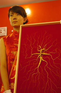 日前,在吉林省長春市舉辦的2008中國·吉林國際人參大會(huì)“長白山參王”拍賣會(huì)上,一棵有百年參齡的長白山“野山參王”,以86萬元高價(jià)拍賣成功,成為野山參的“王中之王”。 據(jù)負(fù)責(zé)本次拍賣會(huì)的吉林省宏大拍賣有限公司工作人員介紹,這棵人參于今年8月3日在長白山腳下、蛟河漂河川附近出土,參齡達(dá)百年以上,鮮重85克,干重25克,且五形俱美,紋少而清晰,腿須呈人字完美展向四周,猶如“仙光四射”,故得名為“千手觀音”。 在拍賣會(huì)上,這棵“千手觀音野山參王”的起價(jià)最高,為30萬元。在幾位買家的激烈競拍下,價(jià)格節(jié)節(jié)攀升,最后以86萬元高價(jià)競拍成功。一位不愿透露姓名的買家介紹,野山參藥用價(jià)值極高且具備很高的收藏價(jià)值:“野山參是稀有物種,會(huì)越來越稀少,很珍貴,所以要買來收藏。”這位買家在拍賣會(huì)上以58萬元也拍得一棵百年“野山參王”。 吉林長白山參王拍賣會(huì)迄今已經(jīng)成功舉辦了三屆。長白山區(qū)是中國乃至世界人參主產(chǎn)區(qū),產(chǎn)量分別占全國的80%和世界的70%,人參出口占世界出口量的60%以上。