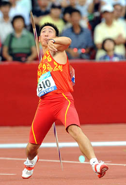 9月10日,中國選手朱鵬凱在比賽中。當(dāng)日,在國家體育場進行的北京2008年殘奧會男子標(biāo)槍F11/12級決賽中,朱鵬凱以63米07的成績奪冠,并打破世界紀(jì)錄。