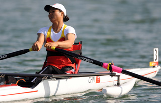 9月10日,中國隊選手張金紅在順義奧林匹克水上公園舉行的北京2008年殘奧會賽艇女子A級單人艇固定座位復(fù)活賽第二組比賽中,以6分43秒78的成績列小組第一名,進入決賽。