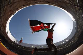 9月11日,肯尼亞選手亨利·基普羅諾·基魯瓦在獲得北京2008年殘奧會(huì)男子5000米T13級(jí)冠軍后,在“鳥(niǎo)巢”中激情狂奔。新華社記者:費(fèi)茂華 攝