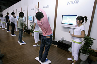 傳統(tǒng)游戲玩家常獲稱“沙發(fā)里的土豆”,意思是他們整天坐在沙發(fā)里打游戲。而任天堂公司2006年11月推出的Wii游戲機與傳統(tǒng)游戲機最大的不同之處在于,玩家可以手持兩個無線手柄,站在游戲畫面顯示屏前,根據(jù)情節(jié)需要,揮動手柄,并配合做出種種動作。 例如,在一款拳擊游戲中,玩家揮出一拳,屏幕上代表玩家的卡通形象也會隨之揮出一拳;在高爾夫游戲中,玩家揮桿擊球,動作會相應(yīng)傳入游戲情節(jié)中。這一過程中,游戲機的手柄起到了傳感玩家動作的作用,使玩家在玩游戲時獲得一種身臨其境的感覺。 Wii操作方式簡單、容易上手,讓難以掌握復雜操作的學齡前兒童和對新型電子設(shè)備接受度差的中老年人可以輕松學會使用。 相對而言,Wii的新一代產(chǎn)品Wii Fit更強調(diào)娛樂和健身相結(jié)合。Wii Fit中附帶了類似體重秤的檢測板,可以測出玩家身體成分構(gòu)成。 Wii Fit中的游戲多與運動項目有關(guān),譬如呼啦圈、回環(huán)滑雪、走鋼絲和慢跑等。此外,玩家還可以用這款游戲機做瑜伽、有氧運動和肌肉訓練。游戲過程中,玩家運動越多,游戲畫面顯示屏上顯示的分值越高。 按照任天堂的設(shè)計,Wii Fit游戲機猶如一款健康檢測儀,可以測出玩家的年齡、身高、體重以及身體成分構(gòu)成等。此外,這款游戲機還能針對玩家的身體狀況提出建議,如“您的身體平衡能力不太好”和“您體內(nèi)的脂肪過多,需要加強鍛煉”等。 任天堂公司稱,Wii Fit游戲機能夠“幫助每一名家庭成員輕松、快樂地鍛煉身體”,定期玩Wii Fit游戲機能強身健體。 任天堂2006年推出Wii游戲機時銷量可觀。而今年4月推出的Wii Fit游戲機更受玩家歡迎。據(jù)統(tǒng)計,推出Wii Fit最初兩星期內(nèi),僅在英國就售出33.8萬臺。