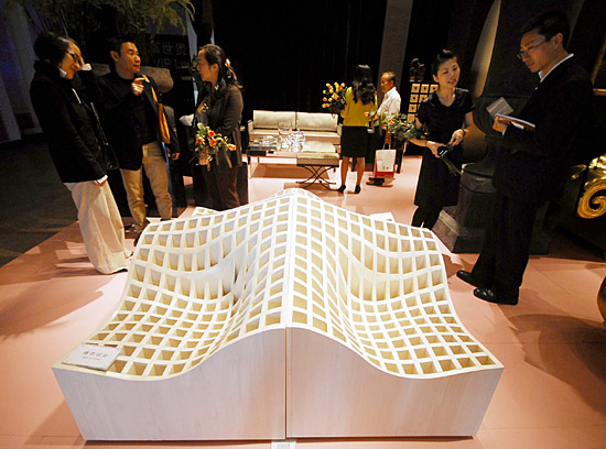 日前,第三屆上海“富世峰會”奢侈品展在上海展覽中心舉行。圖為客人在奢侈品展上參觀頂級家居產(chǎn)品。新華社發(fā)