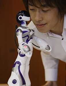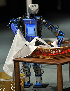 未來的家庭,人類生活更加便利。此次高交會展出了許多“服務(wù)型機器人”,它們會掃地、割草、清洗管道,還會陪孩子娛樂。最重要的是,不少家電企業(yè)都將機器人技術(shù)與日常生活用品相結(jié)合,研制出了老百姓能接受的“智能家電”,如:會自己走路、認路的“保潔機器人”,外表像一個普通吸塵器,但卻能自己設(shè)計路線,用最短的時間走遍房間每一個角落;具有自我調(diào)節(jié)功能的電冰箱,能根據(jù)主人開冰箱的頻率和次數(shù)控制溫度;還有能自己調(diào)味的微波爐;會炒菜、點菜的餐飲服務(wù)機器人…… 中國科學(xué)院深圳先進技術(shù)研究院院長助理畢亞雷告訴記者,機器人并不神秘,如果將傳感等技術(shù)運用在家電上,家電也能具備感知、判斷、執(zhí)行等“機器人功能”,F(xiàn)在有客戶向該研究院提出要研發(fā)一款家用的“搬運機器人”,這個機器人懂得從冰箱里取出食物遞給主人。畢亞雷說,也許過不了多久,這個小型的“搬運機器人”就會走進千家萬戶。