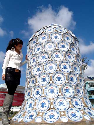 11月4日,一名女孩在江西景德鎮(zhèn)市珠山區(qū)廉政文化主題公園——德馨園觀看百“廉”瓷鐘。這座瓷鐘在外部鑲嵌了126件青花“廉”字瓷盤,寓意警鐘長(zhǎng)鳴。