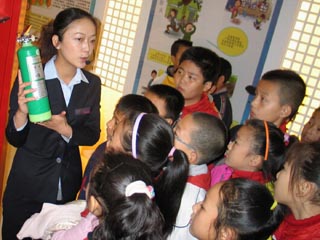 全國(guó)消防日即將來(lái)臨,新疆消防科普教育基地在烏魯木齊創(chuàng)建,今后新疆所有消防科普教育基地(站點(diǎn))將定期向社會(huì)免費(fèi)開放,以增強(qiáng)全民消防安全意識(shí)。圖為11月6日,新疆消防科普教育基地講解員向一群小學(xué)生介紹滅火器使用方法。