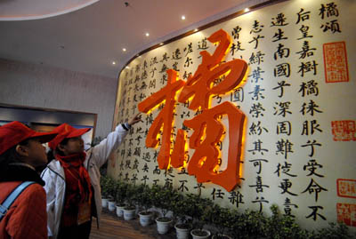 11月23日,浙江黃巖的小學生正在參觀中國柑橘博物館。當日,作為第十屆中國·黃巖柑橘節(jié)的重頭戲--中國柑橘博物館在浙江省臺州市黃巖區(qū)落成。中國柑橘博物館是我國第一座以柑橘和橘文化為主題的大型專題博物館,占地面積25000平方米,建筑面積8000平方米。她將是中國最大的柑橘產(chǎn)業(yè)的文物史料、收藏、展示、保護、研究和教育中心,是中國柑橘文化的展示窗口。