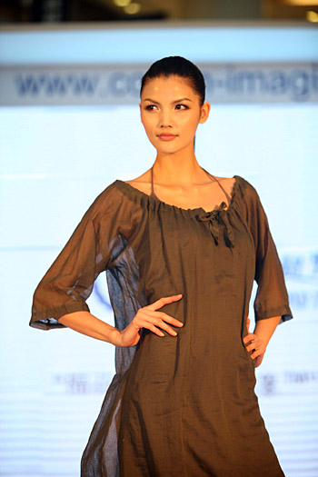日前,“棉花——超乎你的想象”2008設(shè)計(jì)師大賽之“愛棉花,愛棉尚”設(shè)計(jì)頒獎(jiǎng)典禮在北京舉行。圖為模特莫萬(wàn)丹在展示獲獎(jiǎng)服裝。