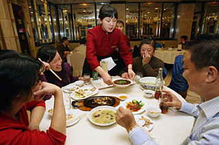 新華社資料圖片 | 近些年來,年夜飯的火暴總能讓商家賺得盆滿缽滿。但是,當(dāng)席卷全球的金融風(fēng)暴來襲時(shí),2009年的年夜飯市場(chǎng)是否還能演繹一枝獨(dú)秀的行情?