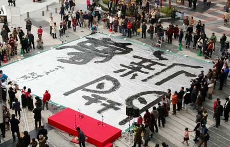 廣島巨幅書法作品表達(dá)新年的美好愿望