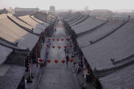 隨著春節(jié)臨近,山西平遙古城內(nèi)的“年味”越來(lái)越濃。今年春節(jié)期間,平遙古城內(nèi)將舉辦“特色中國(guó)年”系列活動(dòng),平遙戶籍的城鄉(xiāng)群眾,可憑本人身份證免費(fèi)參觀全縣納入一票通的開(kāi)放景點(diǎn)。從2004年開(kāi)始,平遙古城就每年在“名城紀(jì)念日”、“文化遺產(chǎn)日”等節(jié)慶期間多次免費(fèi)開(kāi)放景點(diǎn),今年的免費(fèi)開(kāi)放時(shí)間為2008年12月18日至2009年3月31日,比往年有所延長(zhǎng)。圖為掛滿燈籠的平城。 |