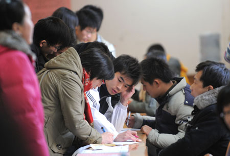 1月14日,寒假留校學(xué)生在應(yīng)聘勤工助學(xué)崗位。當(dāng)日,浙江工業(yè)大學(xué)舉行寒假勤工助學(xué)專場招聘會,10多家企業(yè)提供近200個短期工作崗位,幫助寒假留校學(xué)生減輕經(jīng)濟壓力并獲得社會實踐機會,度過充實的寒假。
