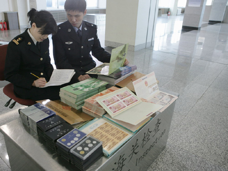 大連海關(guān)查獲走私裝幀人民幣[圖]