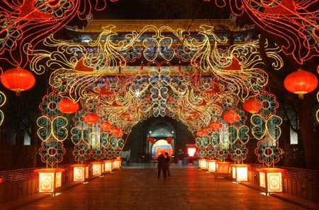 春節(jié)臨近,西安城墻景區(qū)管委會舉辦2009年西安城墻新春燈會,古城西安流光溢彩,迎接新年的到來。