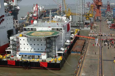 4月2日,由中遠(yuǎn)船務(wù)工程集團(tuán)有限公司為比利時一家企業(yè)設(shè)計建造的一艘大型海洋生活工作駁船在江蘇南通交付。這艘駁船屬海洋工程輔助服務(wù)船舶,長120多米,型寬40多米,擁有可供350人居住的艙室以及柴油、飲用水等儲藏區(qū)間,并配備網(wǎng)絡(luò)、餐飲、娛樂等設(shè)施,將作為浮態(tài)旅館為海上油田服務(wù)。