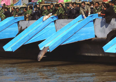 4月9日,3200多尾大規(guī)格長(zhǎng)江“四大家魚”(即青魚、草魚、鰱魚、鳙魚)親魚在安徽安慶放流,這些親魚均已達(dá)到或?qū)⒁_(dá)到繁殖年齡。這也是我國首次在長(zhǎng)江干流人工增殖放流大規(guī)格“四大家魚”親魚。本次活動(dòng)由長(zhǎng)江漁業(yè)資源管理委員會(huì)和世界自然基金會(huì)聯(lián)合主辦,將進(jìn)一步改善長(zhǎng)江流域漁業(yè)資源的狀況。