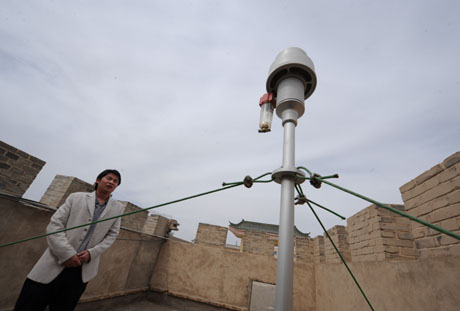 甘肅敦煌沙塵暴監(jiān)測站日前投入使用,這是中國環(huán)境監(jiān)測總站確定的80個沙塵暴監(jiān)測站點之一,不僅能夠第一時間監(jiān)測降塵、風向、風速、能見度等指標,還可及時準確地掌握和記錄沙塵暴產(chǎn)生和發(fā)展過程及對城市空氣質(zhì)量的影響,為有效預(yù)防沙塵暴天氣提供可靠的資料。這是設(shè)在敦煌市區(qū)內(nèi)的沙塵暴監(jiān)測站點探頭。