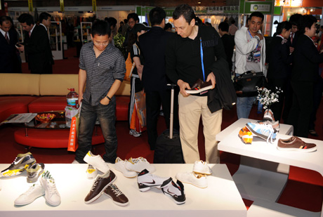 4月19日,海內(nèi)外客商在鞋類成品館參觀。 當(dāng)日,第十一屆中國(晉江)國際鞋業(yè)博覽會(huì)在福建省晉江市開幕。本屆鞋博會(huì)設(shè)立鞋機(jī)、鞋材、鞋類成品館三大展區(qū)和1350個(gè)國際標(biāo)準(zhǔn)展位,吸引來自16個(gè)國家和地區(qū)的海內(nèi)外專業(yè)買家前來洽談?dòng)嗀洝?BR>