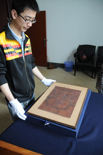 中國現(xiàn)存最早的帛畫、國寶級文物“人物御龍帛畫”21日向新聞媒體展開神秘珍容。湖南省博物館當日宣布在5月22日至8月30日舉辦的“鳳舞九天”——楚文物特展上,“人物御龍帛畫”將首次與湖南觀眾見面。這幅畫如今被收藏在湖南省博物館的文物庫房,極為珍貴。