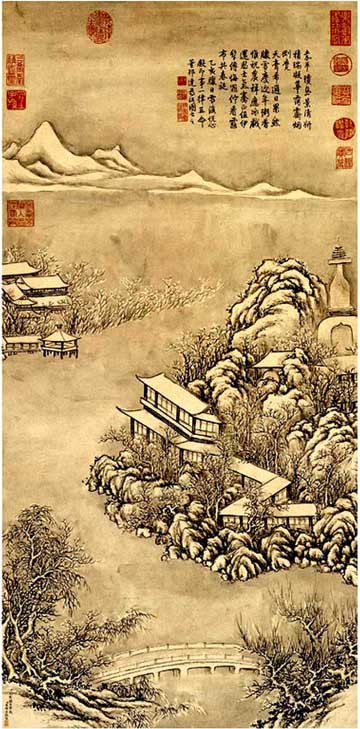 3幅清朝宮廷收藏后散佚民間的古畫,在嘉德2009春季拍賣會上以總計(jì)1.11億元的價(jià)格成交。董邦達(dá)的《雪后悅心殿詩意圖》拍得人民幣795.2萬元。本報(bào)記者汪永基攝 |