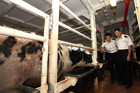 裝載來自澳大利亞的2875頭純種荷斯坦奶!癟ORRENS”輪,日前抵達(dá)連云港。該批奶牛是上海牛奶集團(tuán)為上海世博會提供高質(zhì)量奶源而專門從澳大利亞引進(jìn)的優(yōu)質(zhì)品種,價(jià)值近590萬美元。 據(jù)了解,這是連云港口岸今年進(jìn)口的第一批奶牛,也是自2002年來連云港第10批進(jìn)口奶牛,累計(jì)進(jìn)口達(dá)24626頭。連云港海關(guān)透露,連云港至此已成為江蘇省進(jìn)口奶牛最多的港口。