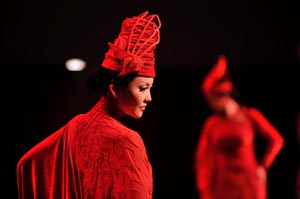 來自俄羅斯圖瓦共和國的模特在展示蒙古族現(xiàn)代時裝。