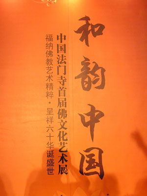 為了迎接新中國(guó)六十華誕,祈福和諧盛世,佛教圣地法門于9月29日至10月30日在合十舍利塔舉辦主題為“和?韻?中國(guó)”的中國(guó)法門寺首屆佛文化藝術(shù)展,千余件佛教稀世珍品與眾多世界頂尖的佛文化藝術(shù)大師首次亮相這一國(guó)家級(jí)別的展出活動(dòng)。這是法門寺文化景區(qū)繼今年5月9日舉行佛指舍利安奉大典后的又一佛文化盛事,為正成井噴態(tài)勢(shì)增長(zhǎng)的國(guó)慶中秋長(zhǎng)假游客奉獻(xiàn)文化盛宴。