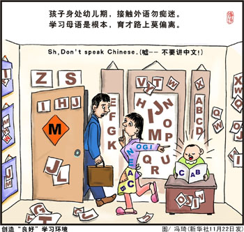 面對(duì)如此的“殊榮”,最先皺緊眉頭的是廣大英語(yǔ)教育工作者。一位河北某重點(diǎn)高中的英語(yǔ)老師向記者表示:“國(guó)人既然在學(xué)習(xí)國(guó)際通用的英語(yǔ),那就應(yīng)該堅(jiān)持學(xué)習(xí)原汁原味的。中國(guó)式英語(yǔ)的泛濫成災(zāi)恰恰說(shuō)明我們對(duì)標(biāo)準(zhǔn)英語(yǔ)接觸的太少!痹谒磥(lái),中國(guó)式英語(yǔ)所折射出的不僅僅是國(guó)民的英語(yǔ)水平,更是全民文化素質(zhì)。“過(guò)于應(yīng)試化的教育在一定程度上在為中國(guó)式英語(yǔ)推波助瀾!彼f(shuō)。