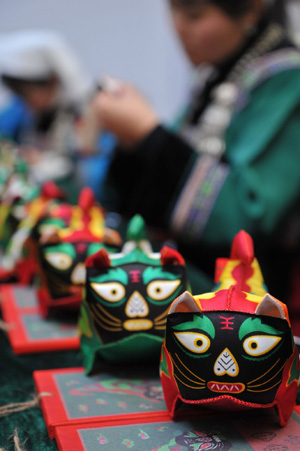 一名水族的手工藝人在貴陽(yáng)一作坊內(nèi)制作“祥云神虎”,迎接農(nóng)歷虎年的到來(lái)。