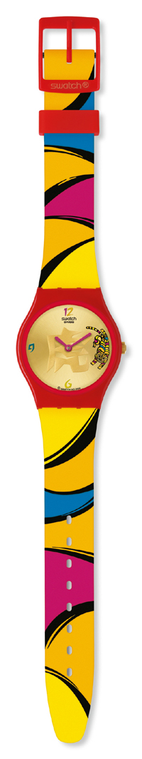Swatch為這個(gè)專屬于中國(guó)人的特別節(jié)日奉上了一款生肖腕表——炫虎迎福。這款腕表以時(shí)尚設(shè)計(jì)與中國(guó)傳統(tǒng)風(fēng)格遙相呼應(yīng)。明黃色的腕帶與鮮紅色的帶環(huán)相配,飾以五色相間的彩色條紋。表盤(pán)中央印有一個(gè)碩大的啞光金色中國(guó)漢字“虎”,精致的浮雕工藝令它鮮活而富有層次。表盤(pán)上橫跨3點(diǎn)的位置繪制著一只縱身躍起的炫虎,亮麗的紅色指針在表盤(pán)中心不停的跳動(dòng),記錄著歡悅的分分秒秒。 |