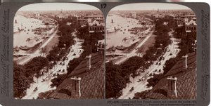 向南眺望法國租界和內城,上海。銀鹽照片,1900年。 |